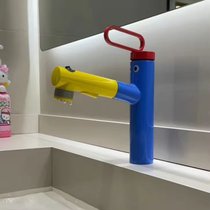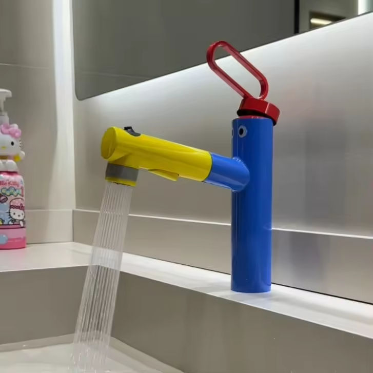 Cute Colorful Solid Brass Modern Touchless Sensor Deck Mounted Bathroom Single Hole Ceramic Vanity Sink Faucet